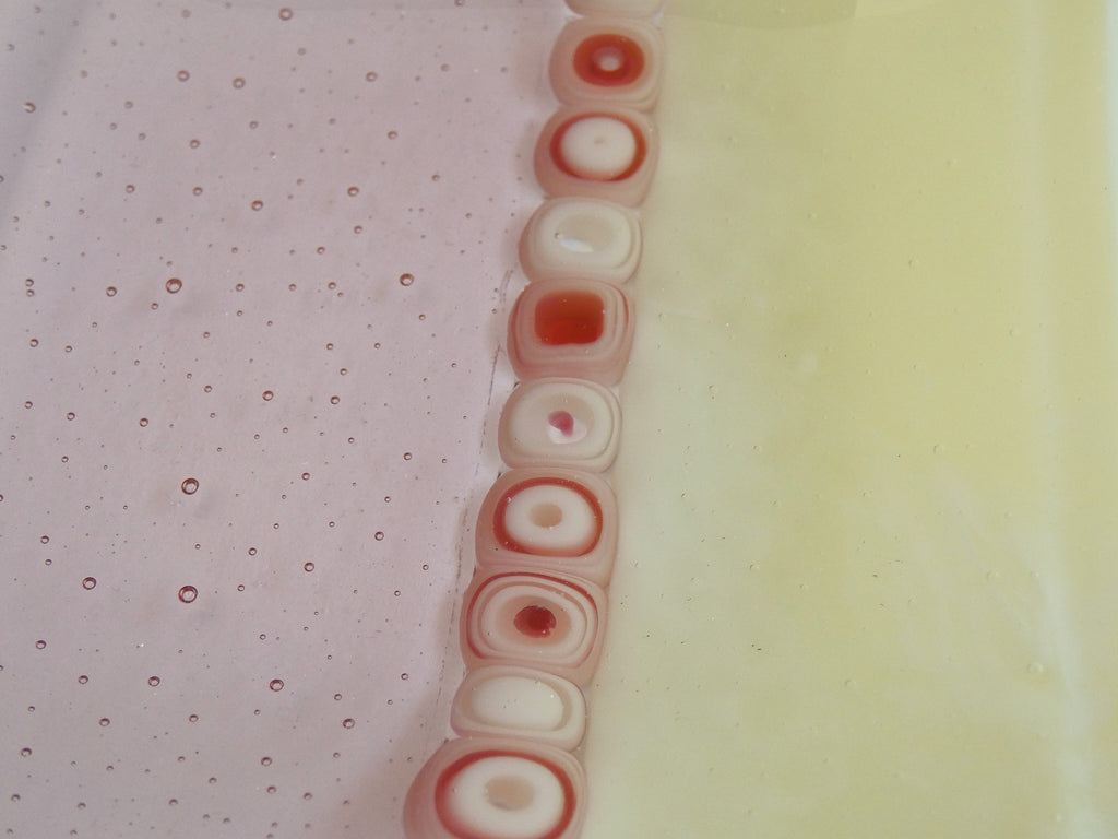 Fused Glass Murrini Plate in Coral and Cream